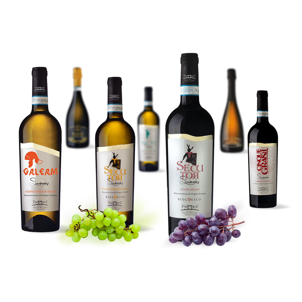 “Masseria Vigne Vecchie” nasce nel Sannio, a Solopaca, nel 2005 come cooperativa agricola. Nel 2016, grazie all’amore e alla passione per i prodotti vitivinicoli, viene rilevata dalla famiglia Garofano che acquisisce 14 ettari destinandoli all’agricoltura biologica. Crea, quindi, una linea di vini biologici che denomina “Samnes” nel tentativo di rivendicare e far conoscere le proprie radici, contribuendo a diffondere la cultura e l’amore per la propria Terra. La quale, in questo caso è così riconoscente che ricambia, ogni anno, donando quei meravigliosi frutti da cui si produce il Vino. La linea biologica “Samnes” incarna il cuore del Sannio e narra le gesta dei Sanniti, cullati tra le braccia dell’amata Dormiente. Il massiccio appenninico del Taburno, traccia infatti la silhouette di una fanciulla che dorme, il cui profilo si ottiene allineando l’intera gamma di bottiglie, tutte vestite di un’etichetta sostenibile, in fibra di cotone, la quale ha assorbito una profumazione che ricorda organoletticamente il vino che accoglie.